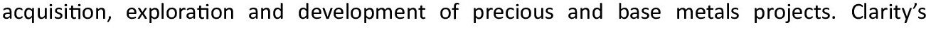 Clarity Metals Corp. is a Canadian mineral exploration project generator company focused on the acquisition, exploration and development of precious and base metals projects. Clarity’s exploration mandate is global and focused on countries with established legal and regulatory systems supporting mining investment. The Company is based in Vancouver, British Columbia, and is listed on the CSE under the symbol “CMET”.