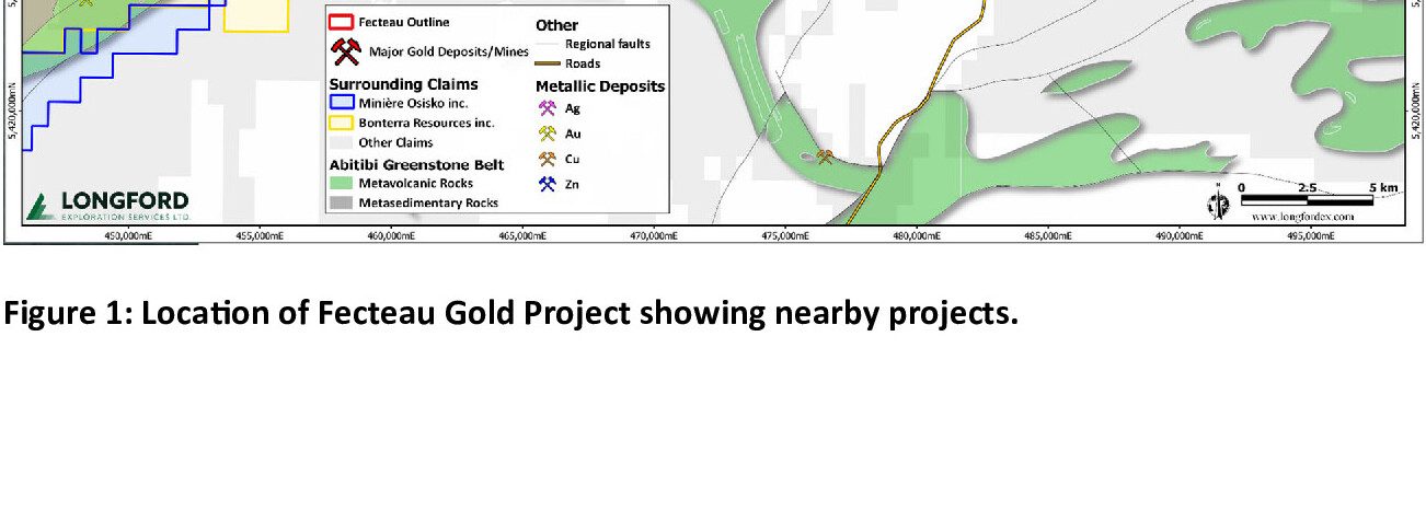 Figure 1: Location of Fecteau Gold Project showing nearby projects.